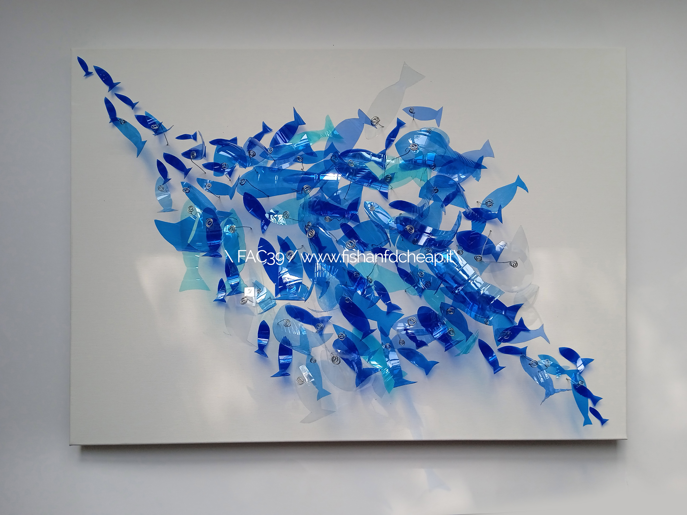 fishandcheap_39 | plastica riciclata su tela, 50x70 cm (19.7 in 27.6 in) | 2023Tela Windsor&Newton, cotone, 350g/m2 (12.3 oz)
