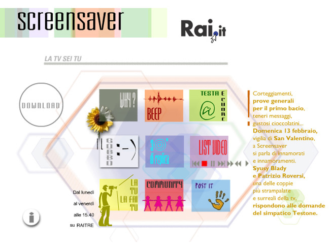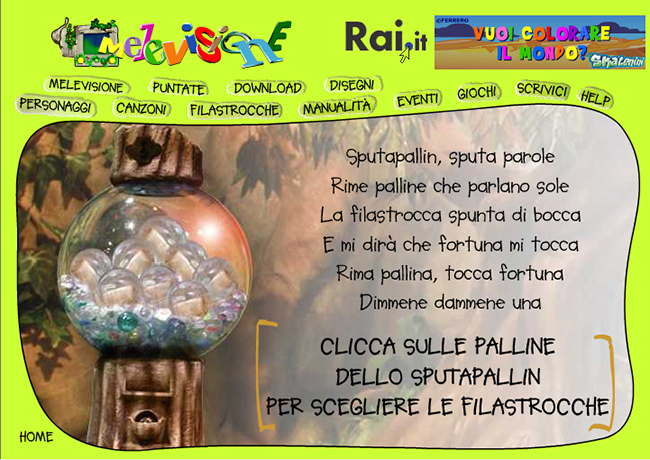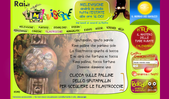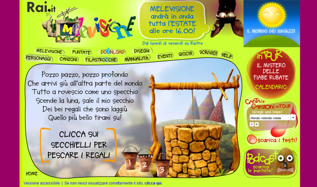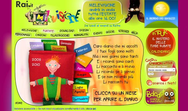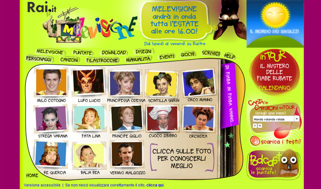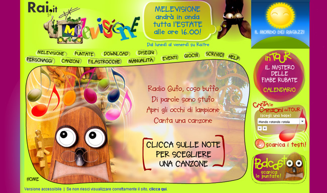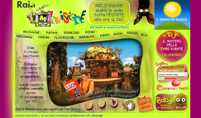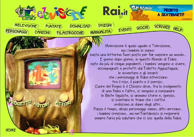 RAI RADIOTELEVISIONE ITALIANA | Rai Tre Bambini e RagazziPeriodo: 2000 - 2010Progetti di grafica per la promozione e comunicazione, allestimenti e web design per i programmi: Melevisione, Screensaver, Trebisonda, È domenica papà.