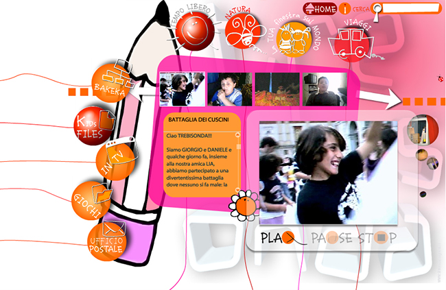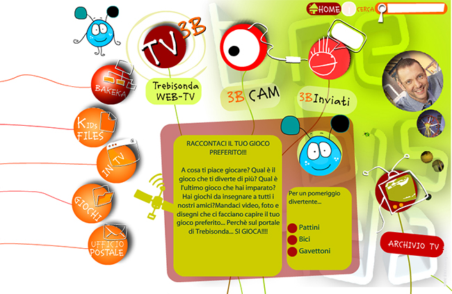Progetto grafico e realizzazione pagine Flash del sito per il programma per ragazzi Trebisonda, 1° release.